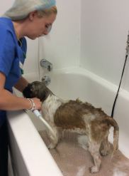 Our team is able to do baths and nail trims for dogs. Our veterinary assistants are not professionally trained but are able to do some simple trimming and sanitary shaves.