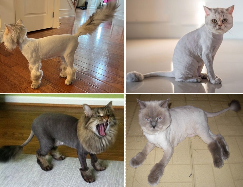 For cats, we offer lion cuts, mat removals, sanitary shaves, waterless shampoo, nail trims, brush outs.